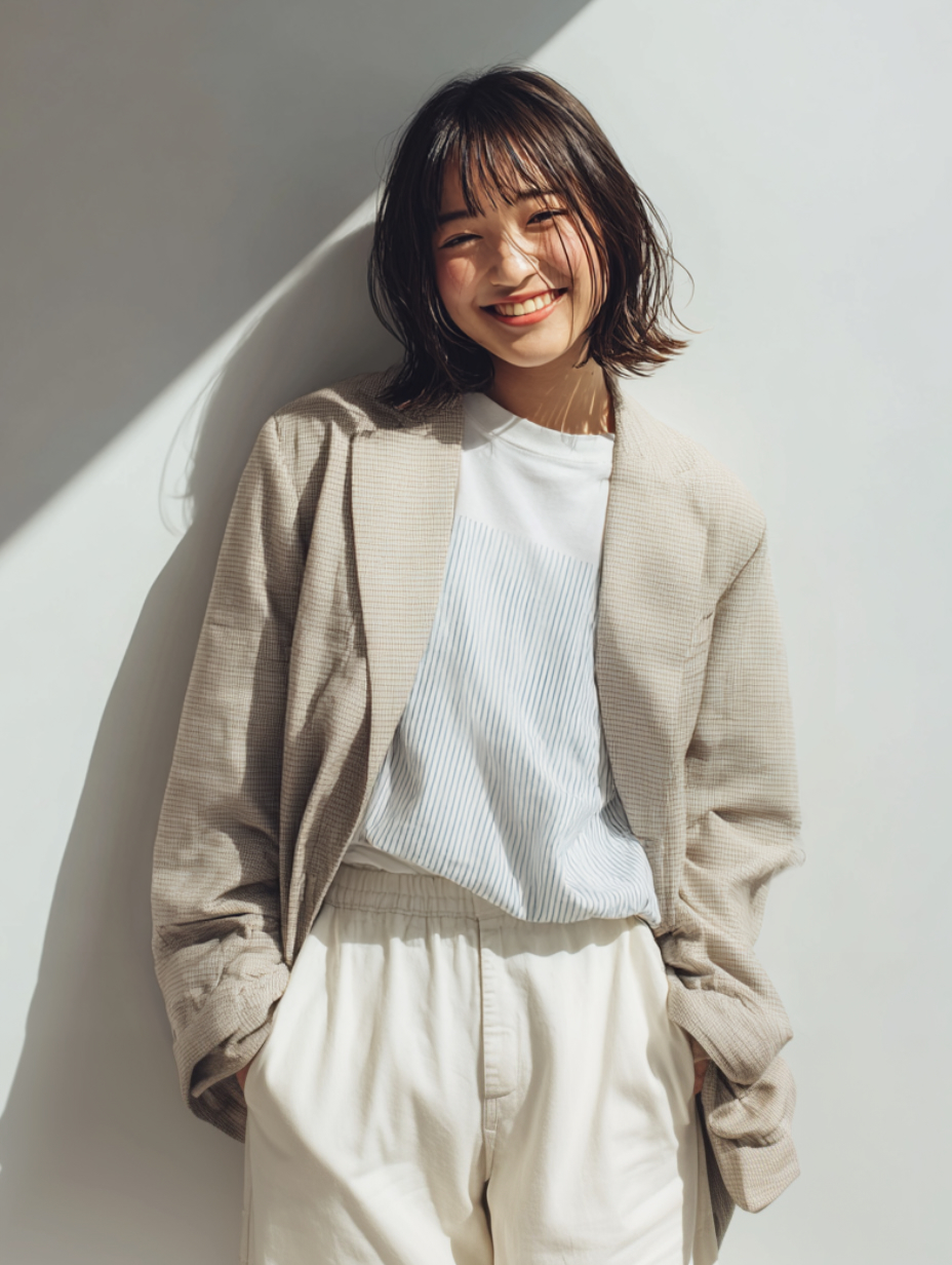 春っぽいカッコにちょっと抜け感の
